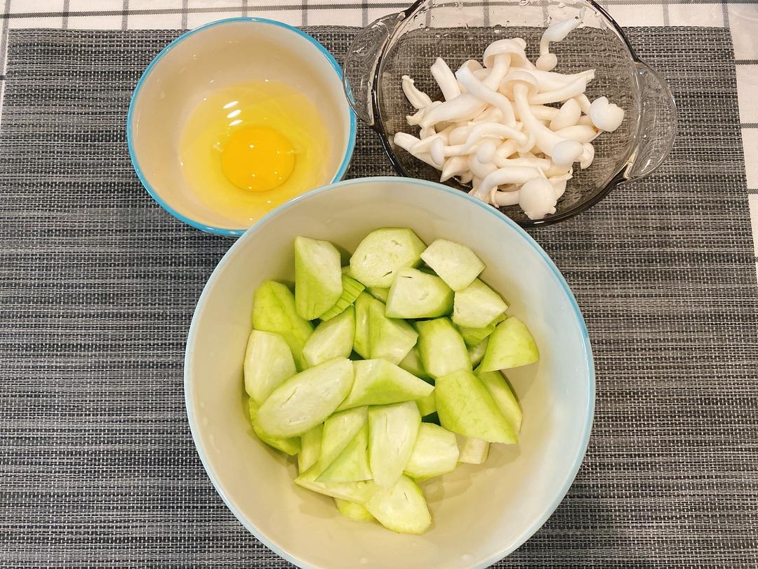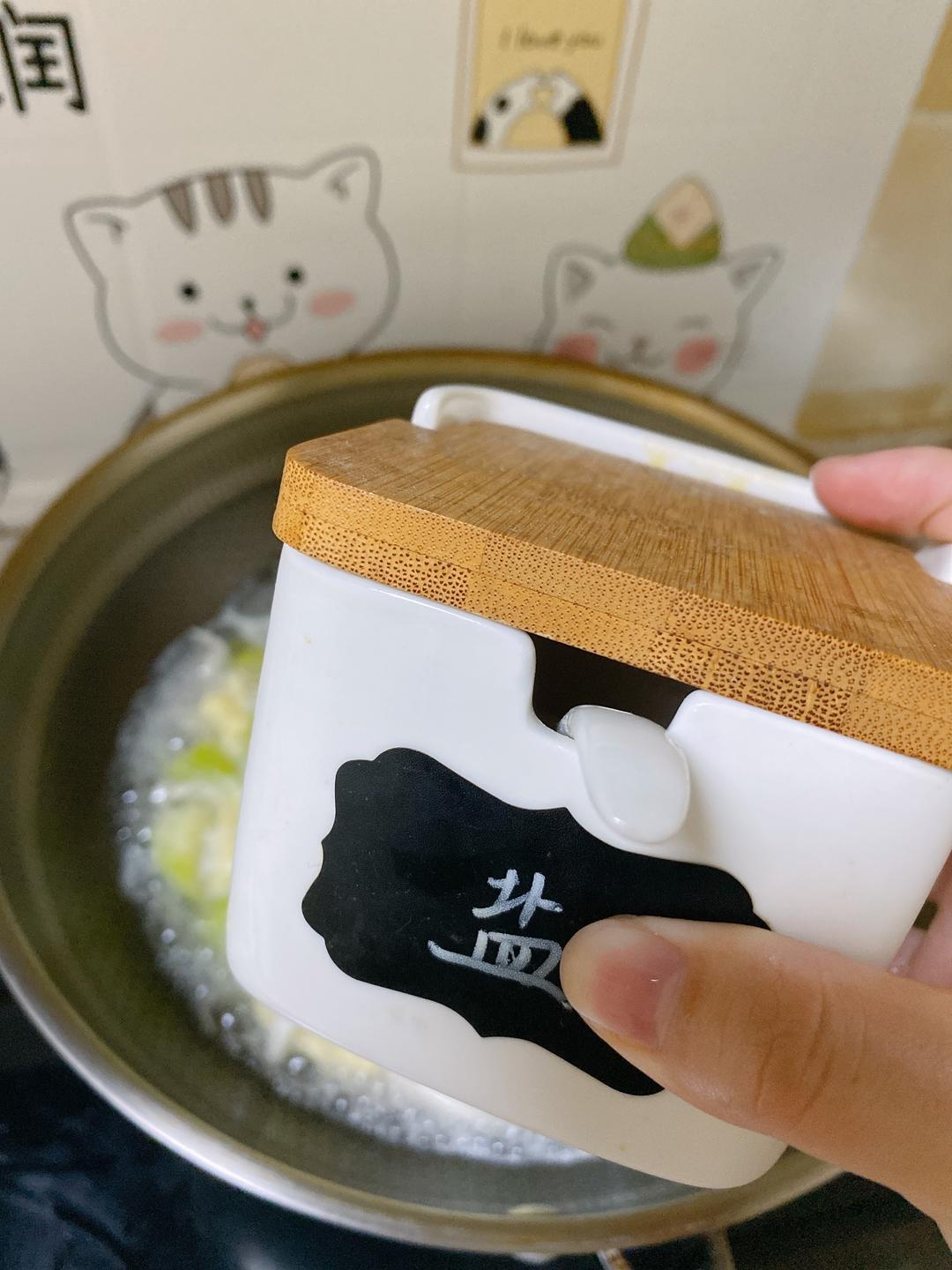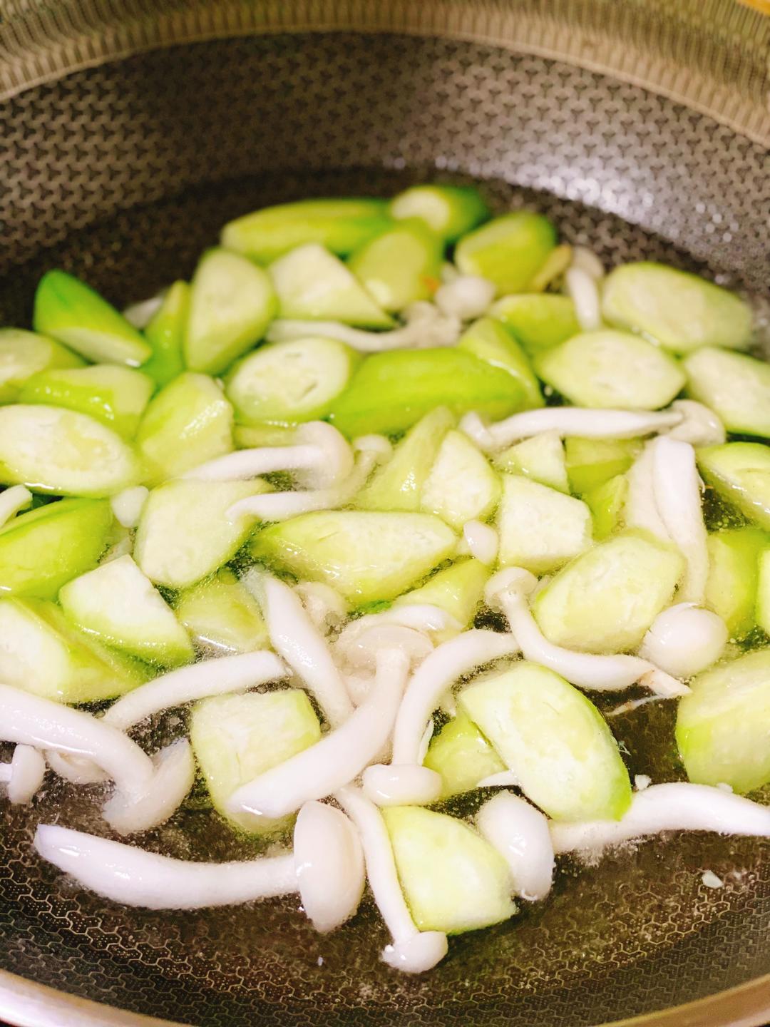 8.加入适量的盐就完成了,因为这个丝瓜,白玉菇本身就很鲜,不用再另外加鸡精。