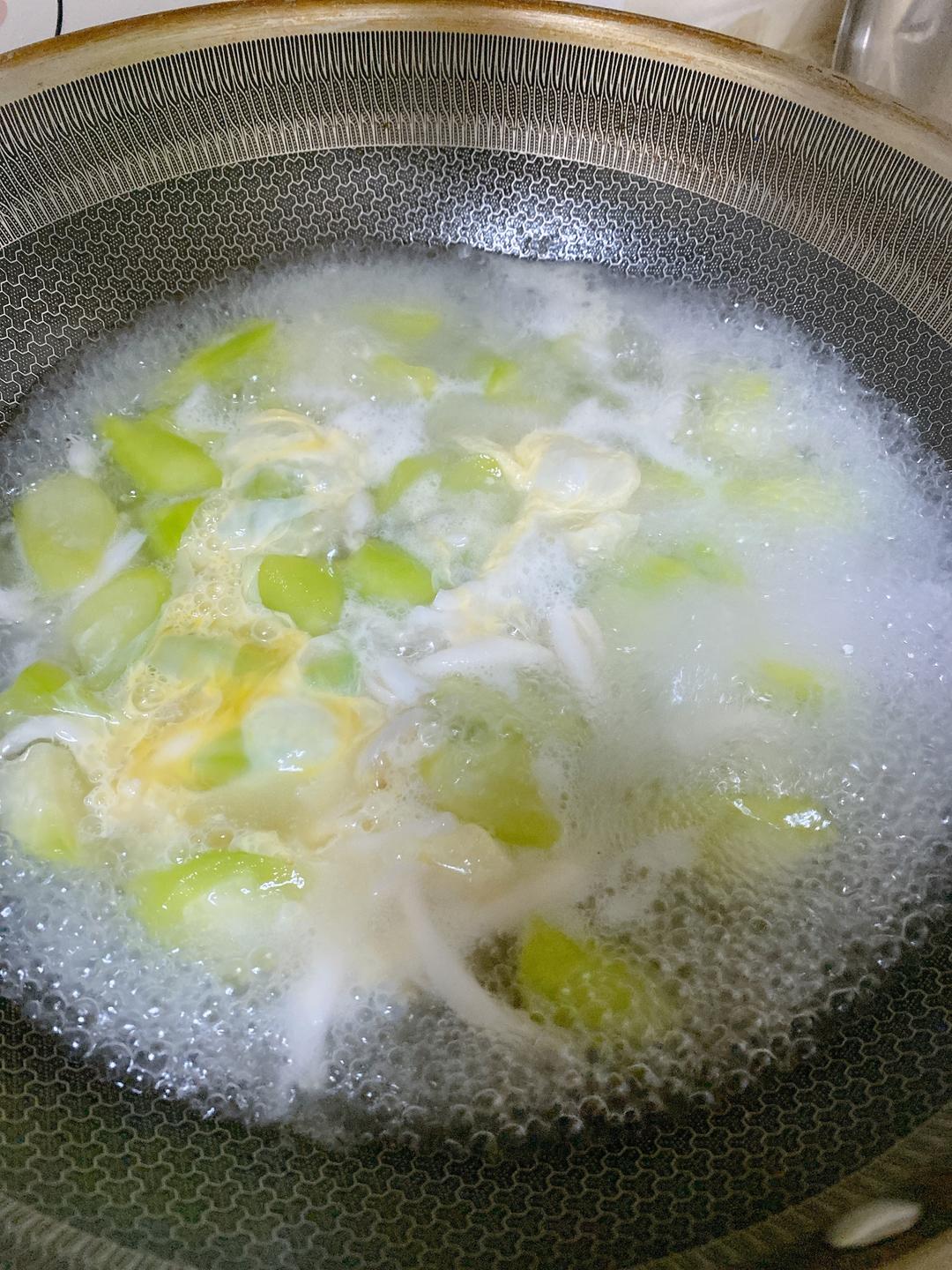 7.烧开之后倒入打好的鸡蛋。