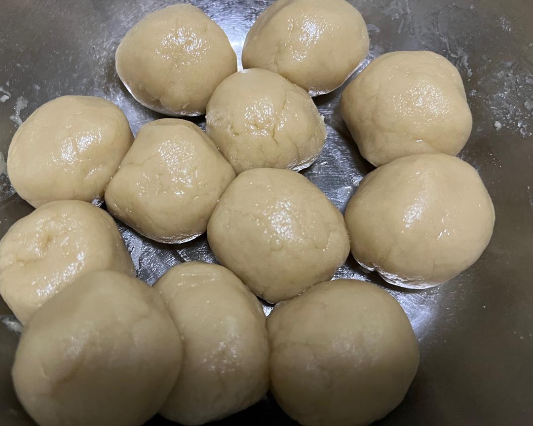将饼皮分成12个,每个约33克左右