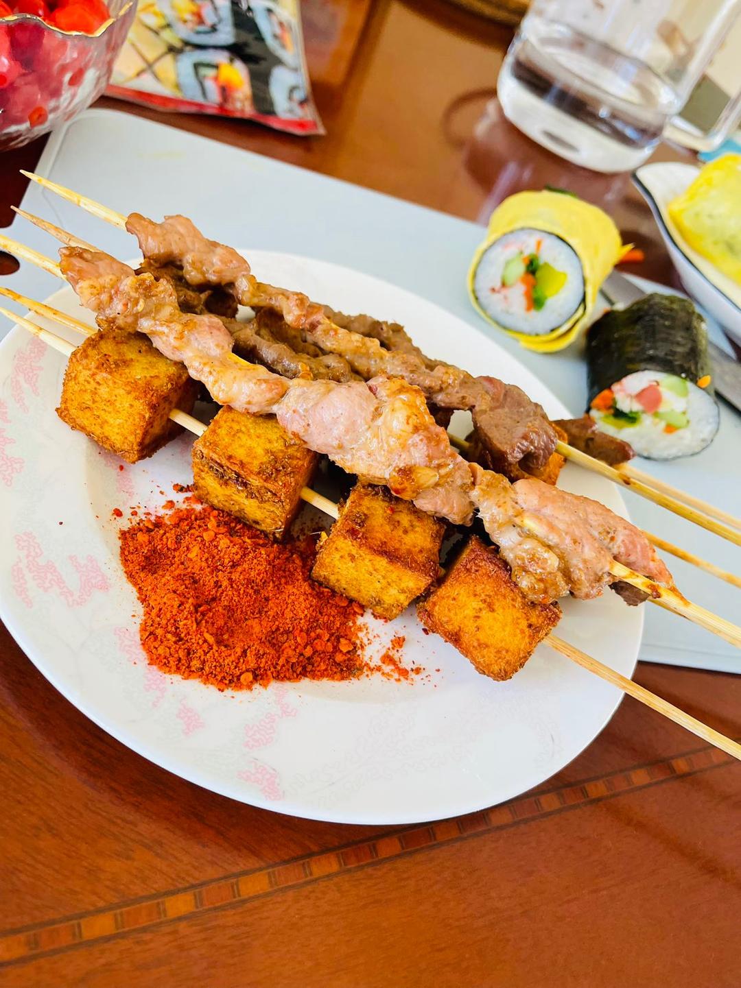 给邻居送去一些品尝 亲爱的邻居送来的烤肉 好吃的要一起分享~~