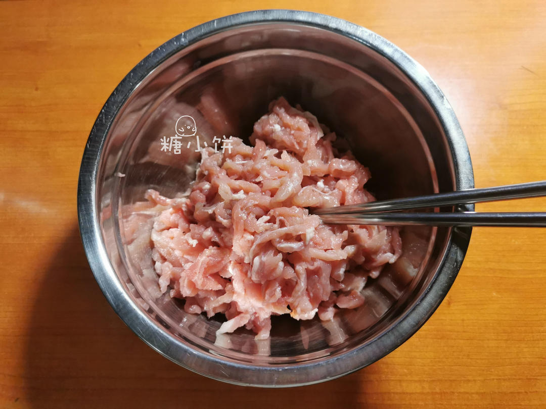 瘦肉400G洗净沥水,切成细条。