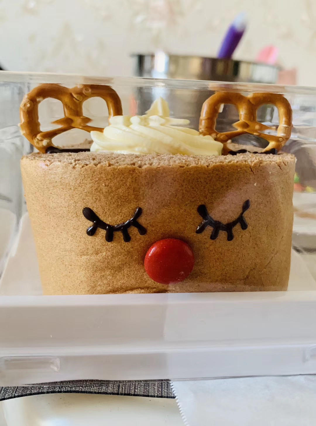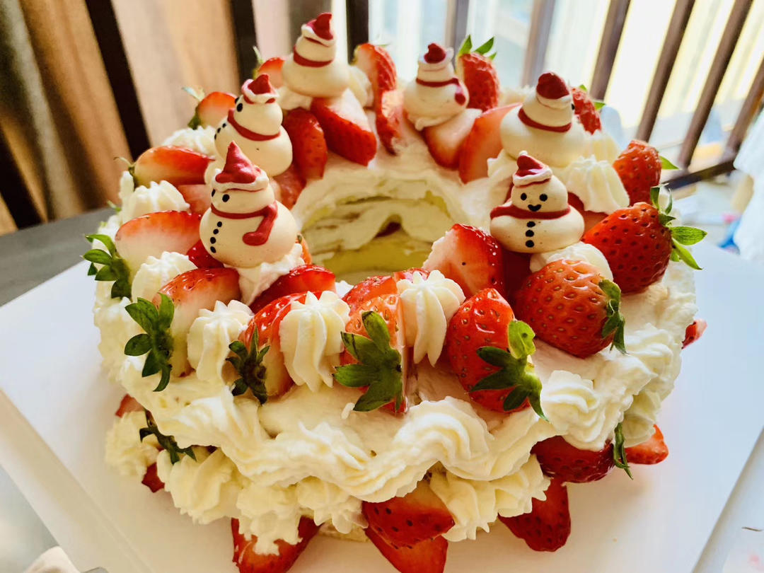 第一个蛋糕,怕奶油融化,北方的冬天开窗怼着寒风抹面,第二天直接冻感冒。
