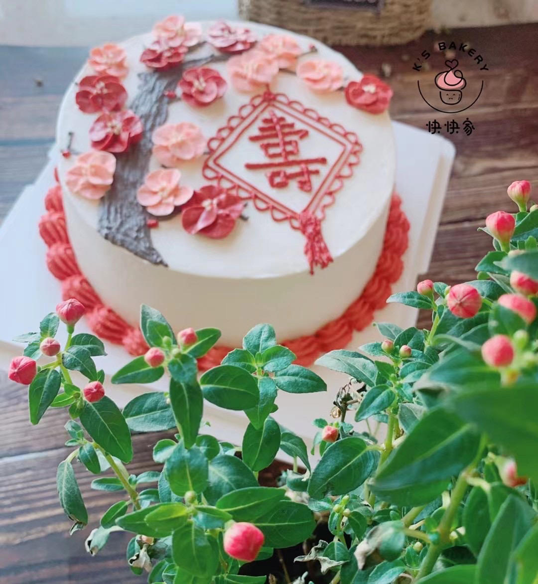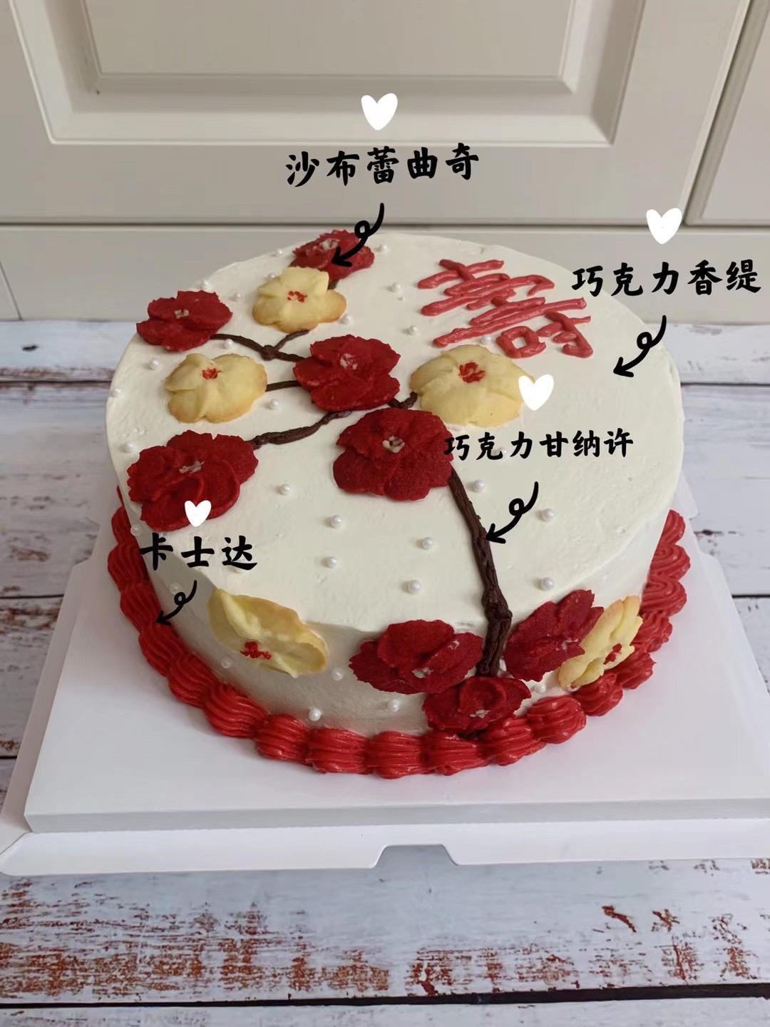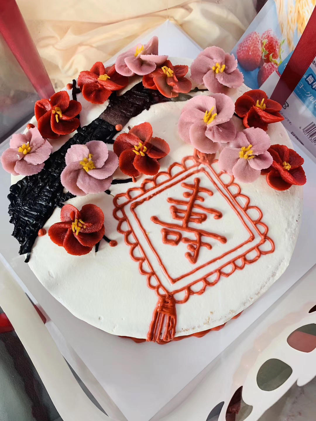 朋友的奶奶生日,第一次用白豆沙裱花,用的红丝绒液调色。觉得它比色素要好😂