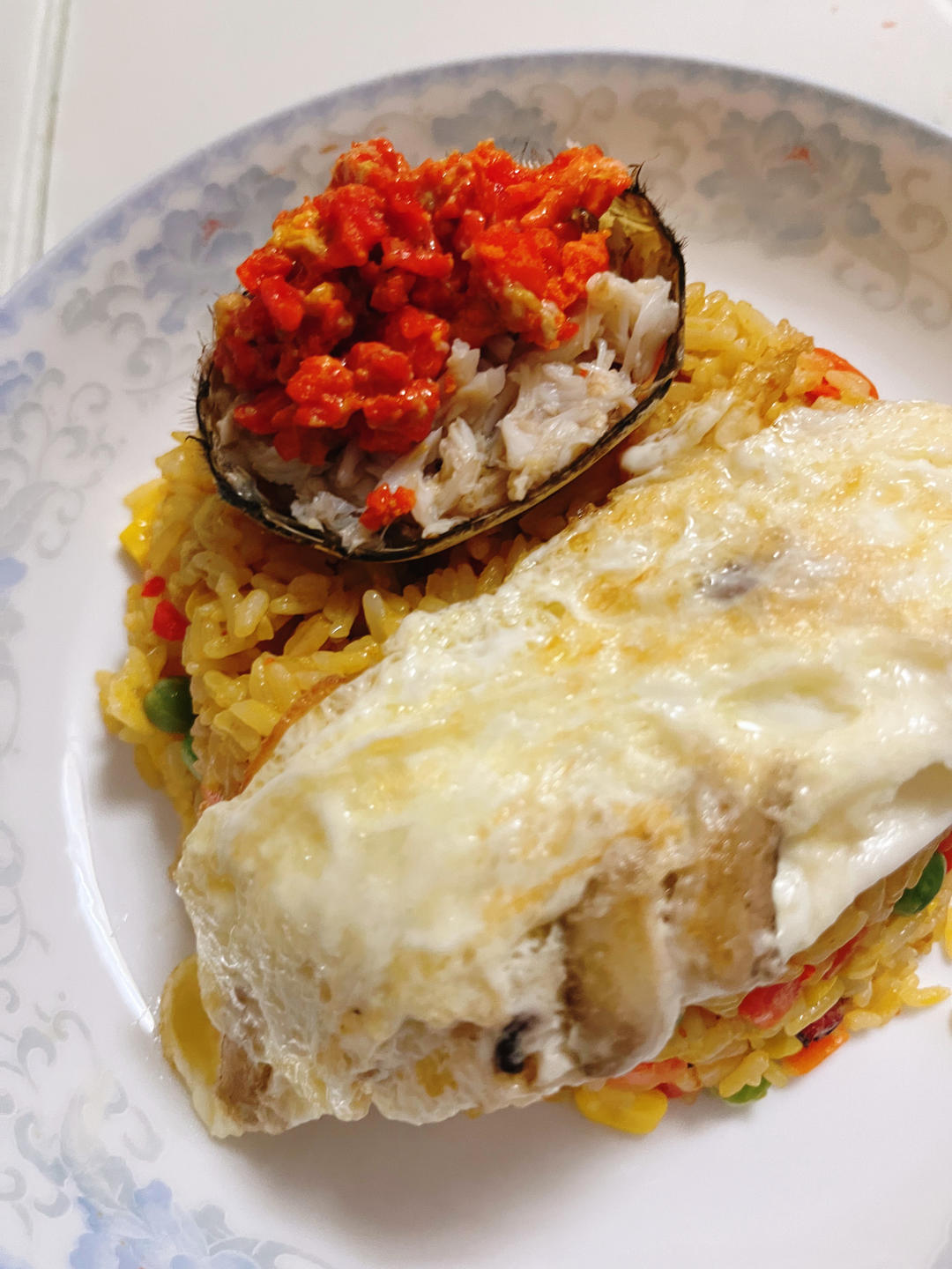 满满一口的蟹黄和蟹肉,此处BGM:蟹蟹你给我的爱,今生今世我不忘怀。 又是简简单单的一餐蟹黄炒饭,嗝~