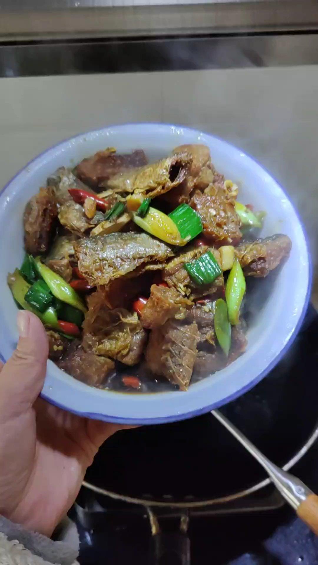 一丢丢油,然后生姜大蒜🧄辣椒,炒出香味,丢鱼块,鸡精胡椒粉生抽老抽,一碗水,大火收汁下大蒜叶即可!