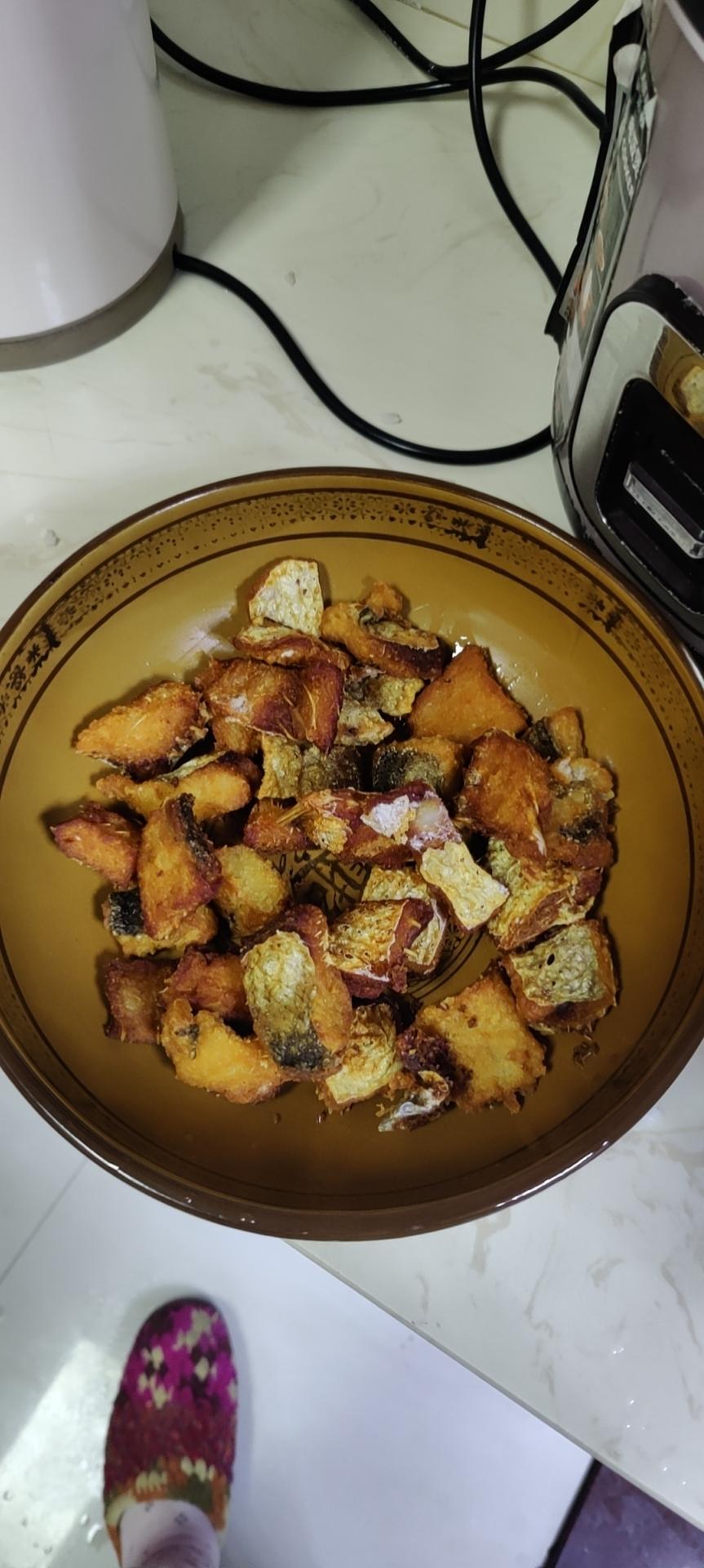 炸好的鱼块,金黄酥脆,因为腌制过,所以会有点点咸味,不想红烧,可以直接吃,酥酥脆脆的,或者加点辣椒面孜然搅拌,或者用辣子鸡的做法,做成辣子鱼,也好吃!