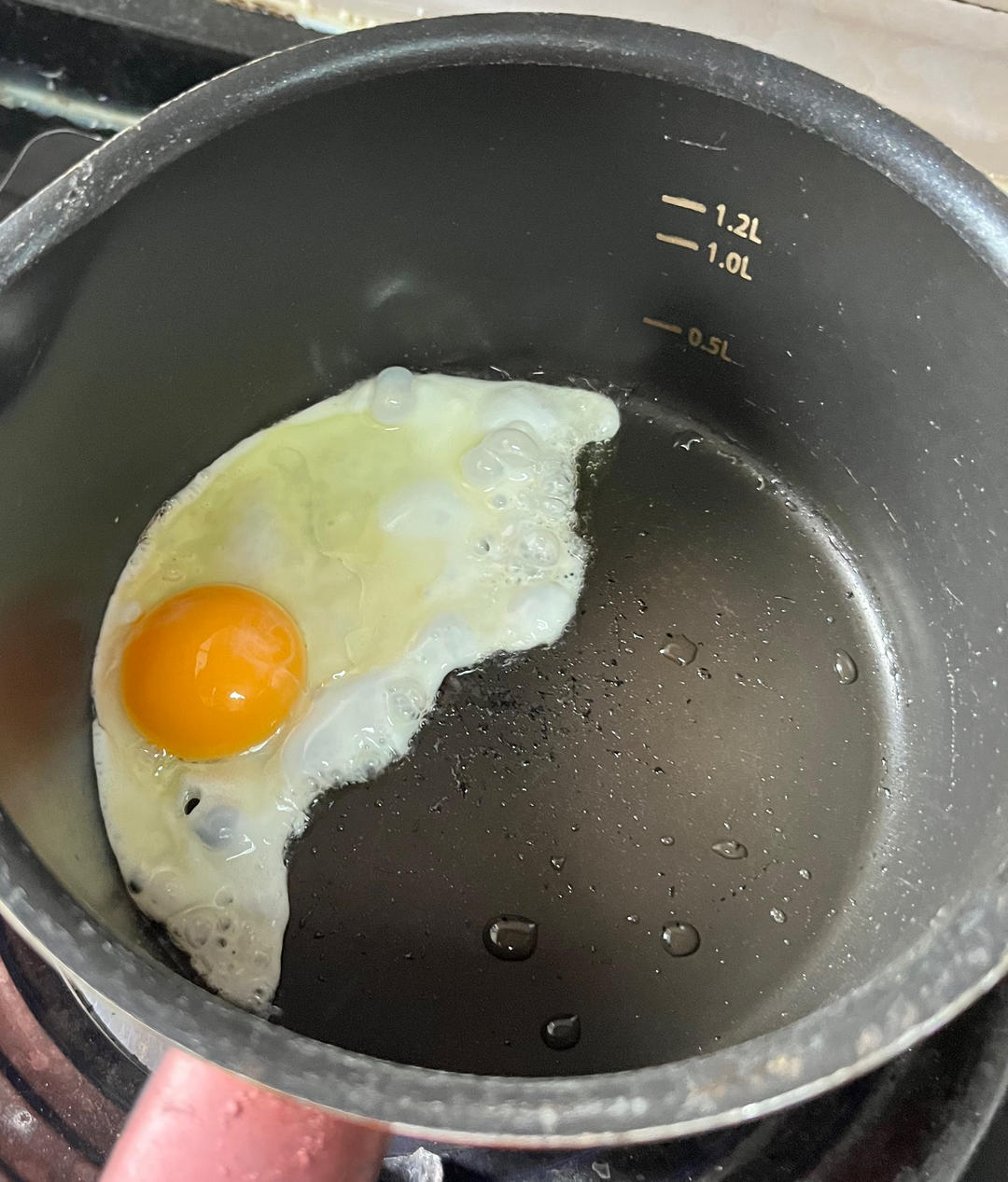 不沾奶锅里放油,先煎蛋