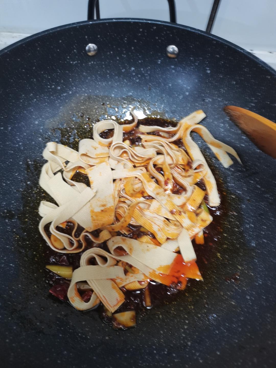 放入干豆腐(千张)翻炒。