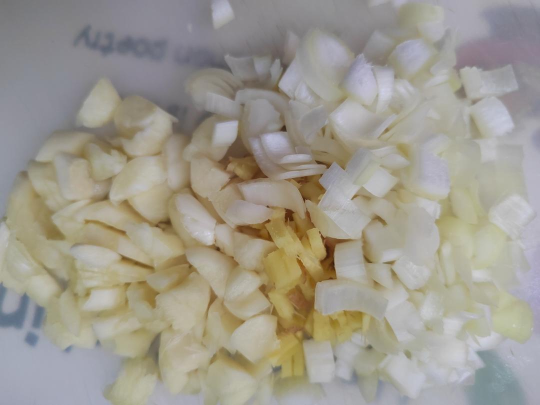 葱姜蒜切末备用。