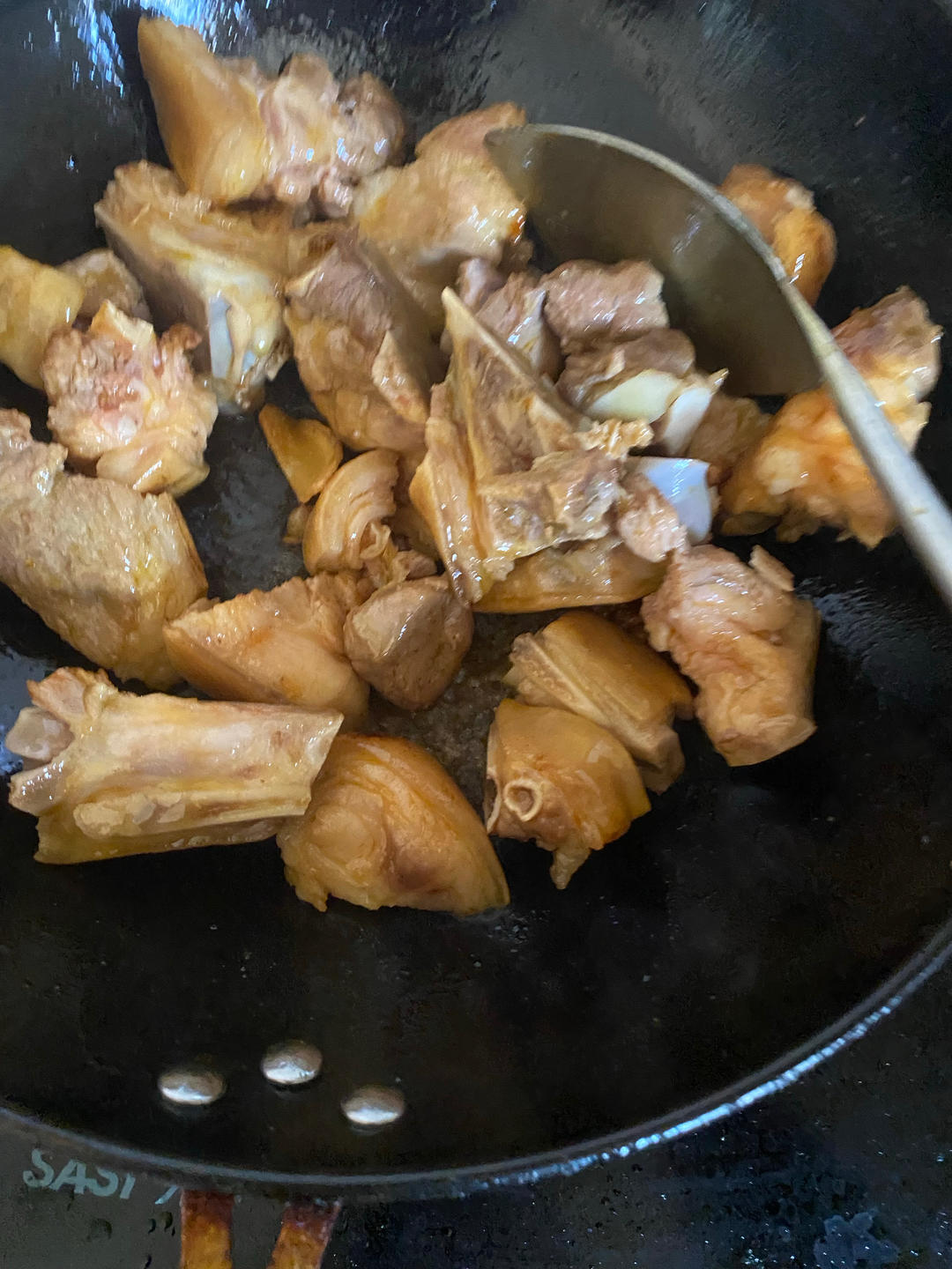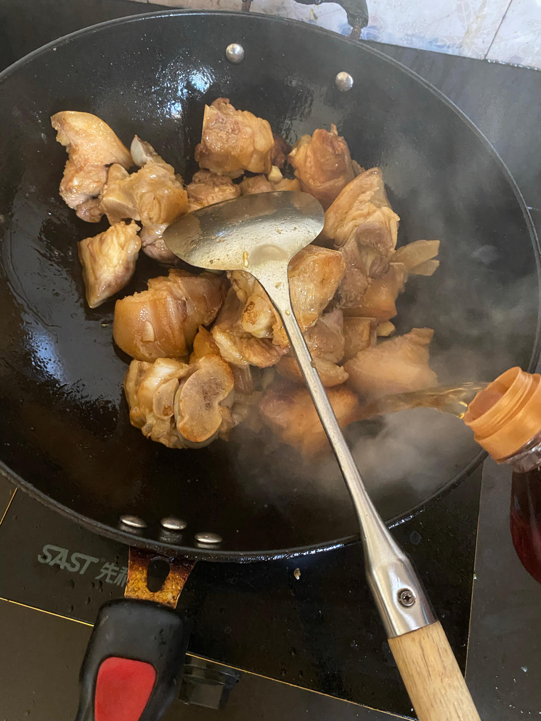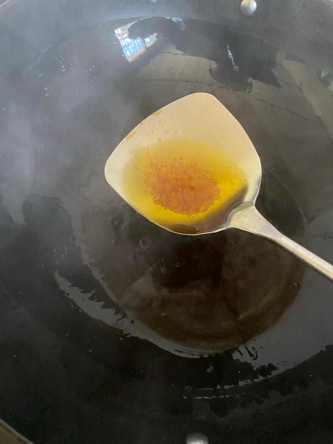 这时候颜色还差一点,还继续烧一会,糖色能看出来吗