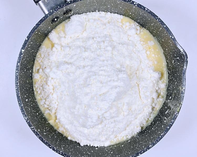 趁热加入麻薯粉、奶粉