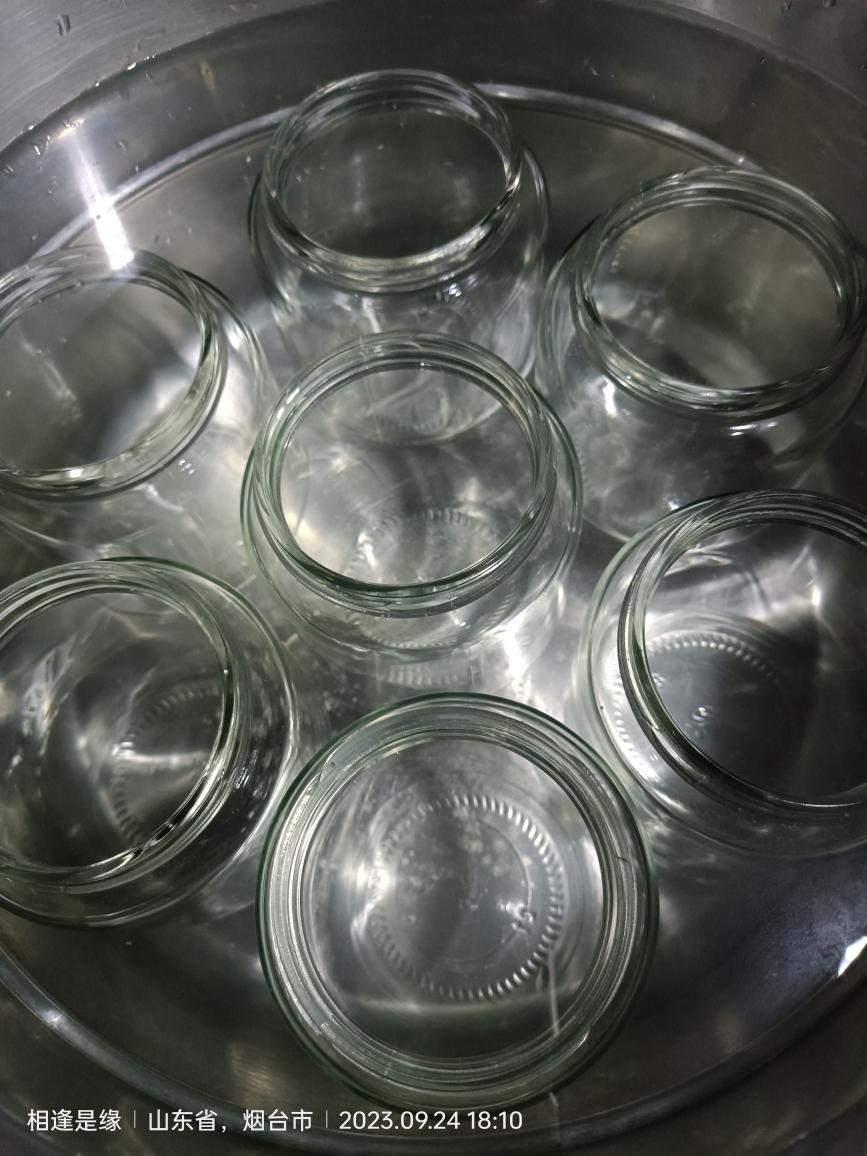 提前烧了些热水,放凉备用(一部分用来泡黄桃块,一部分用来倒进罐头瓶子里)
