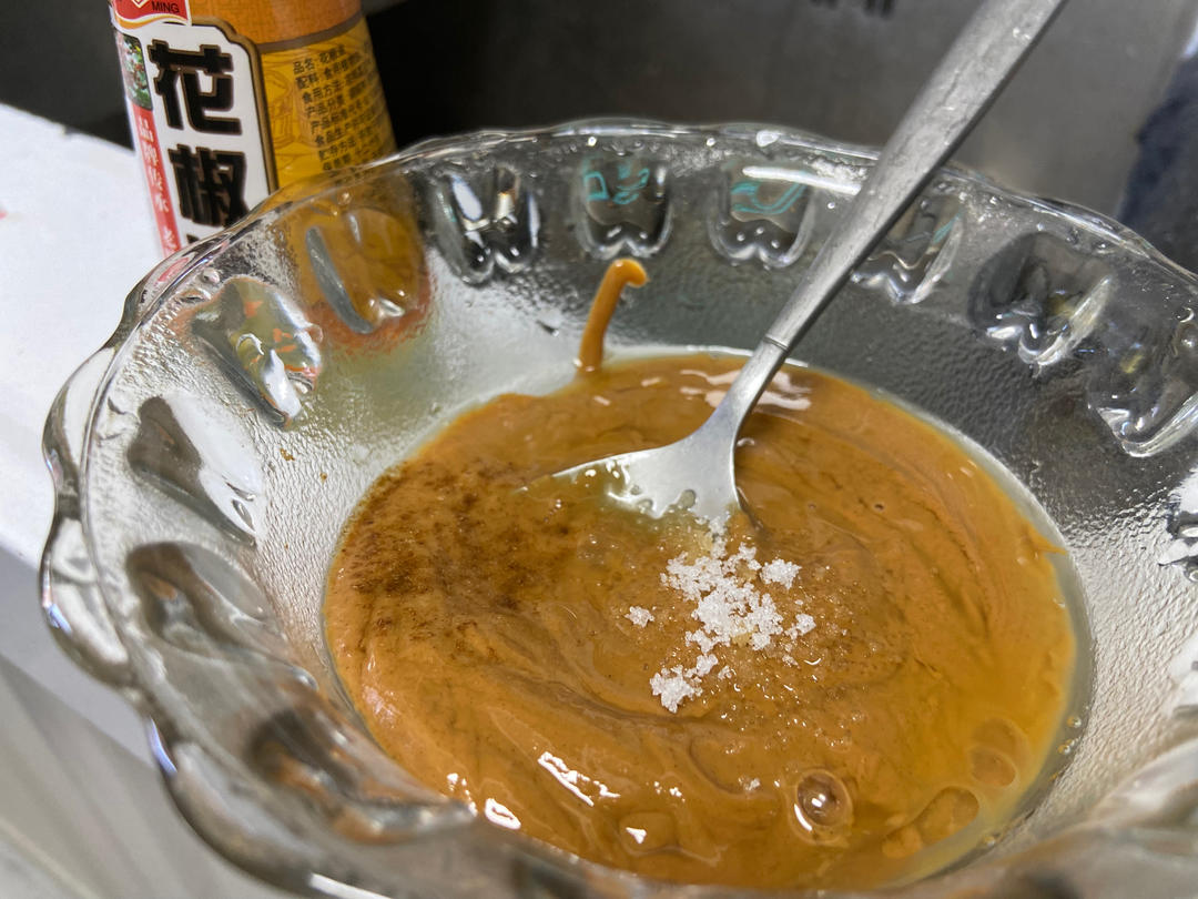调麻酱小料,二八酱,盐,糖,花椒油,腐乳汤汁都按照自己口味放量,一点点兑水搅和,不粘也不稀刚好!