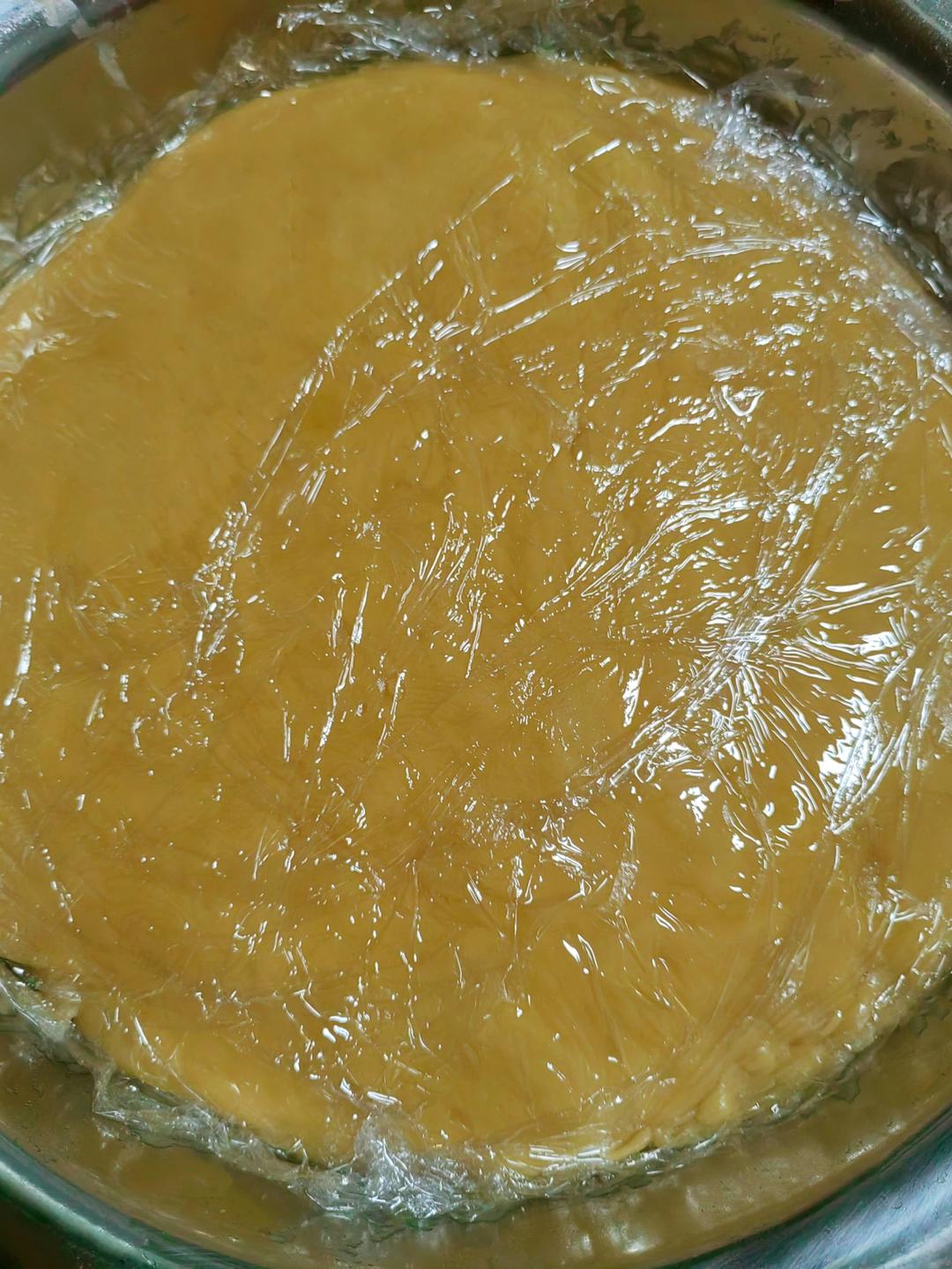 贴上保鲜膜,静止一个小时左右,一定要像图片这样贴紧。