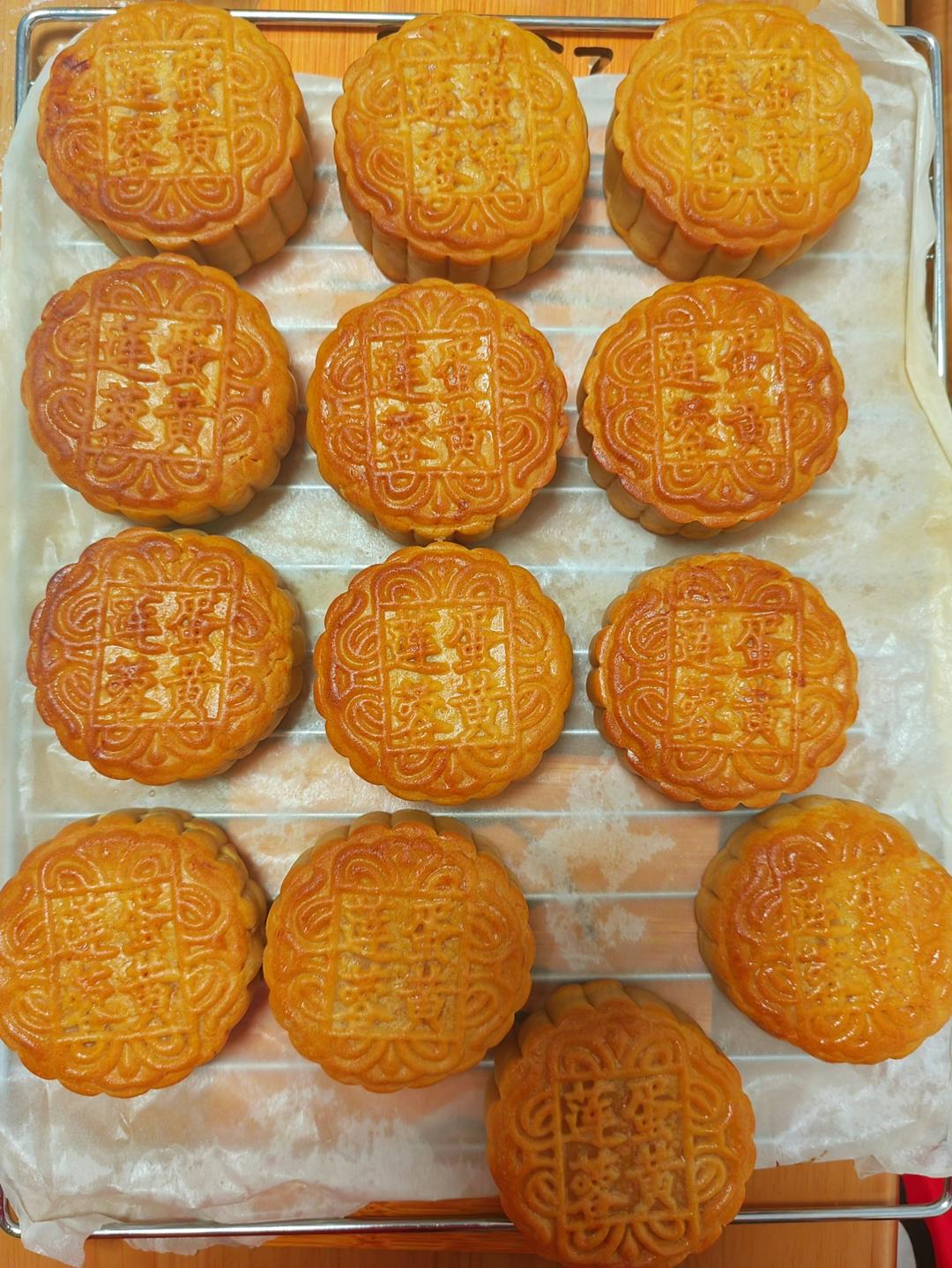 包好的49个蛋黄白莲蓉馅料全部都在这里了。