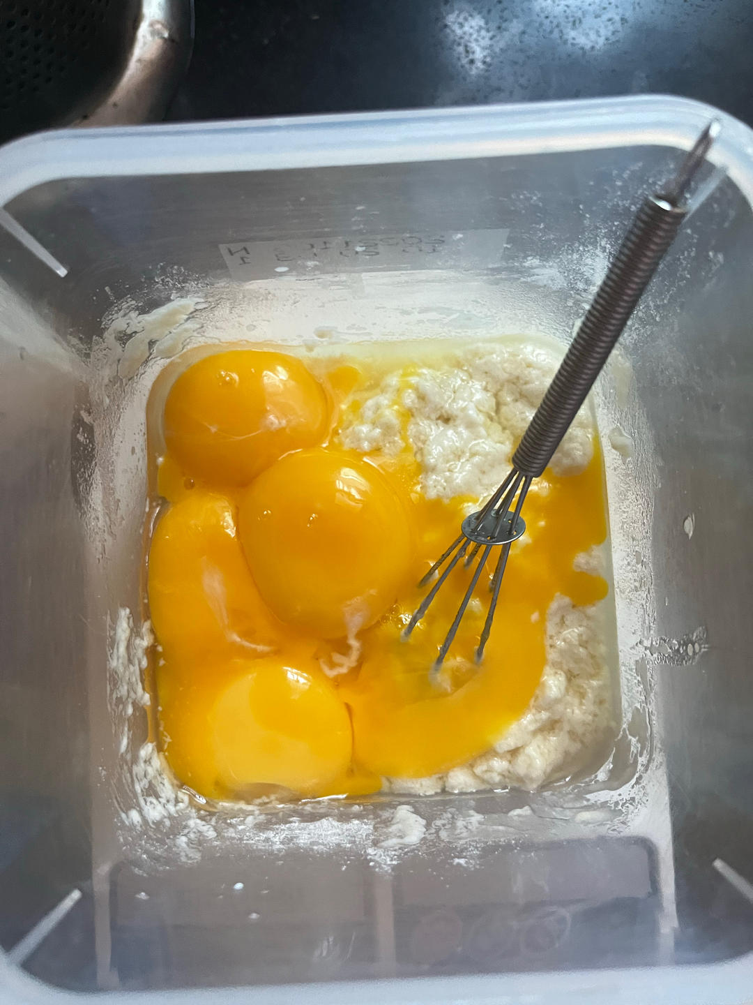 放入4分之1到蛋黄糊里搅匀