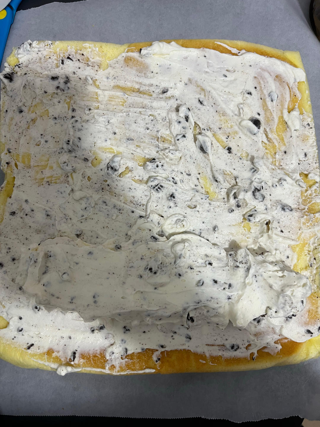 在前面的奶油抹多一些其他地方均匀涂薄