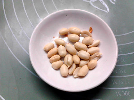 将炒花生去掉外壳内皮,取用10克。