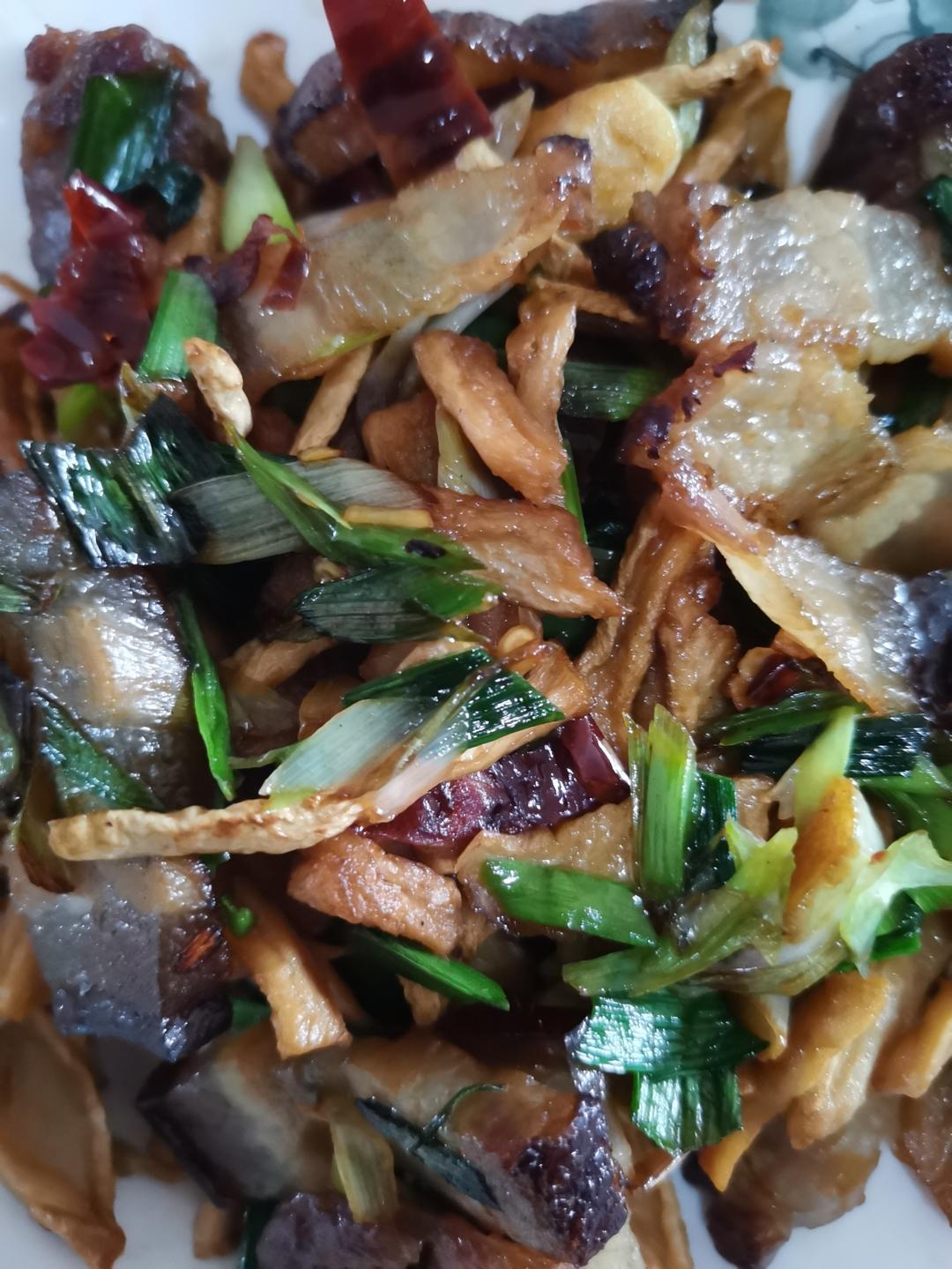 倒入腊肉翻炒(可以稍多炒一下,萝卜条也进腊肉味,腊肉偏咸,不用放盐了)。