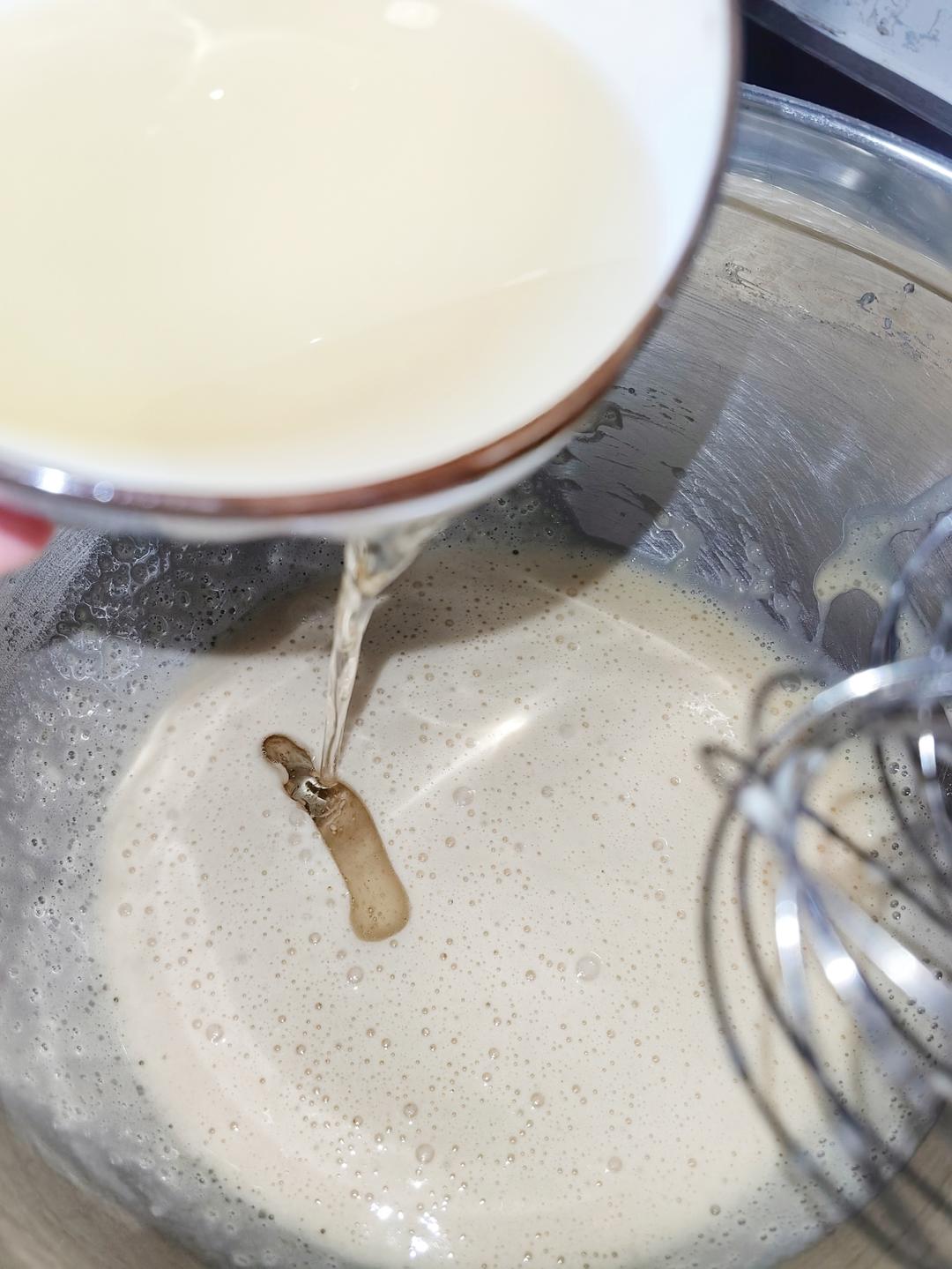 分2-3次加入玉米油,低速打发混合