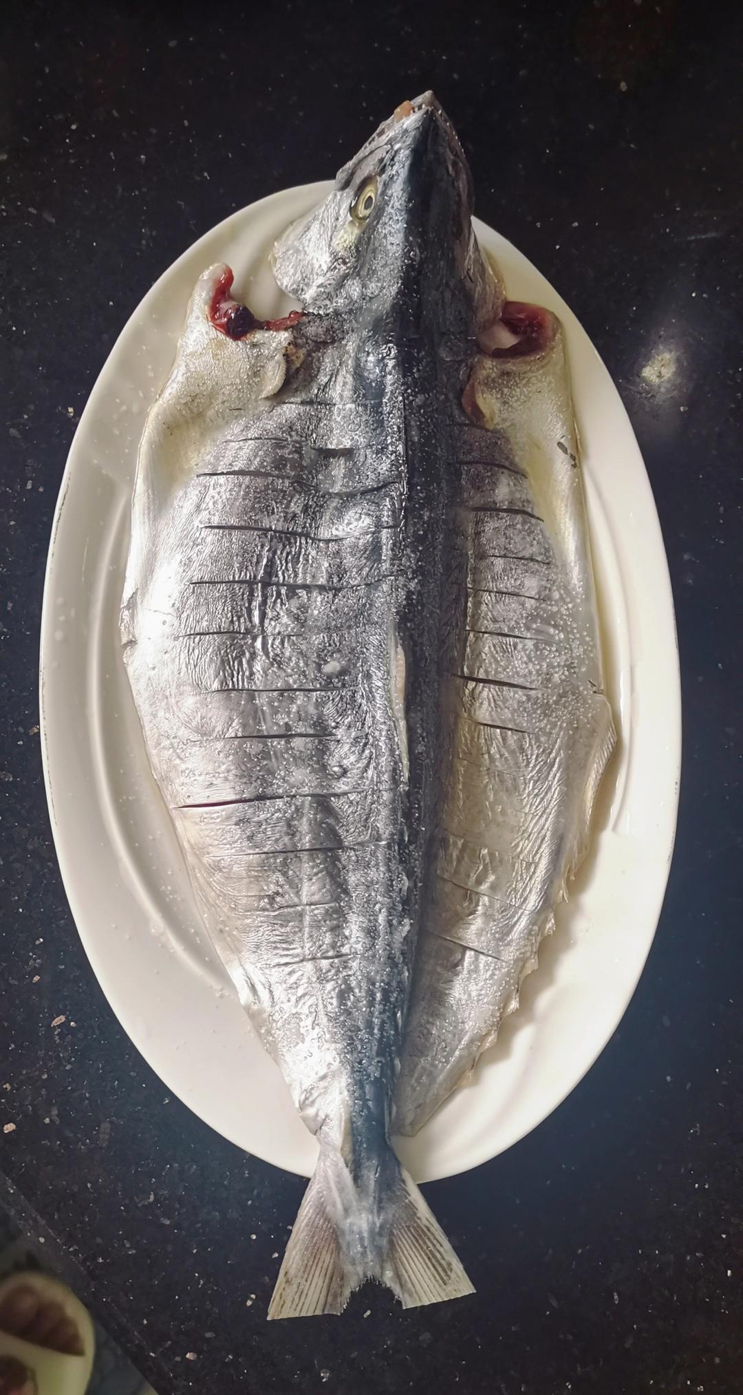 马鲛鱼 洗净搽干水份,打好条状花刀(方便入味、夹取)