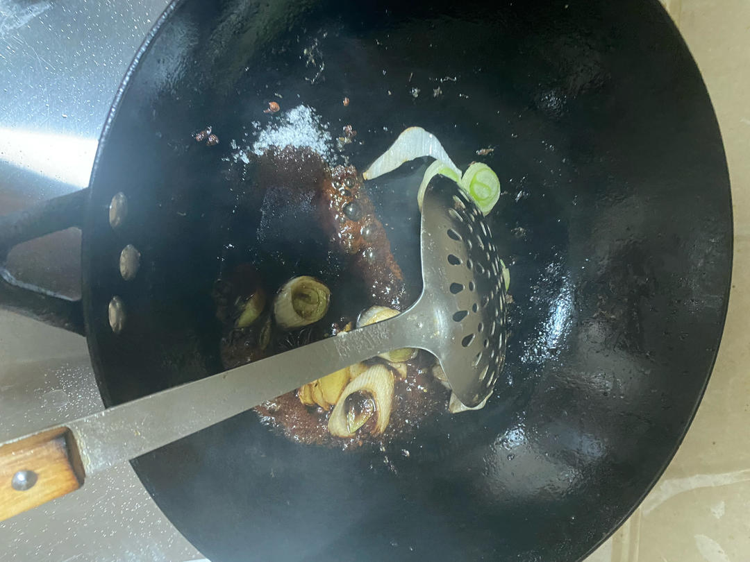 烹去生抽,白糖,胡椒粉,喜欢甜面酱的可以在此处加入甜面酱,再加一点点盐