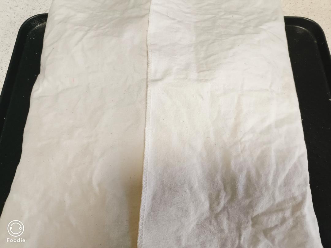 盖上发酵布。温暖处发酵40分钟左右。