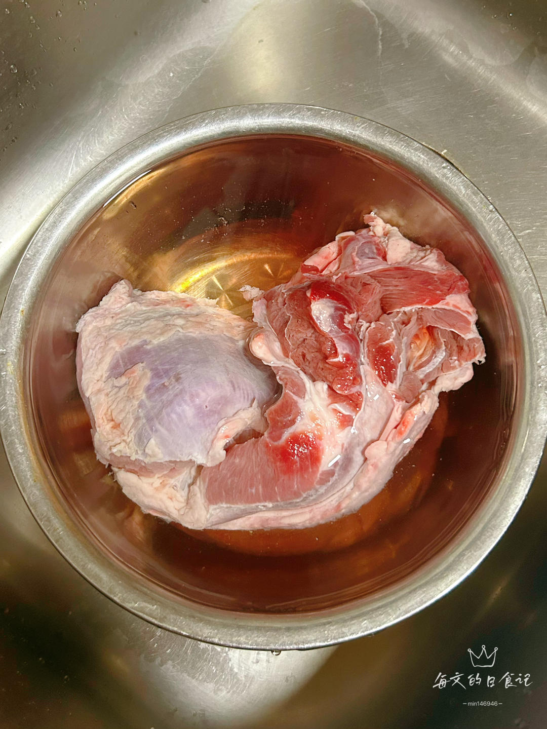 1500克牛肉洗干净,切成2块,用清水泡20分钟。