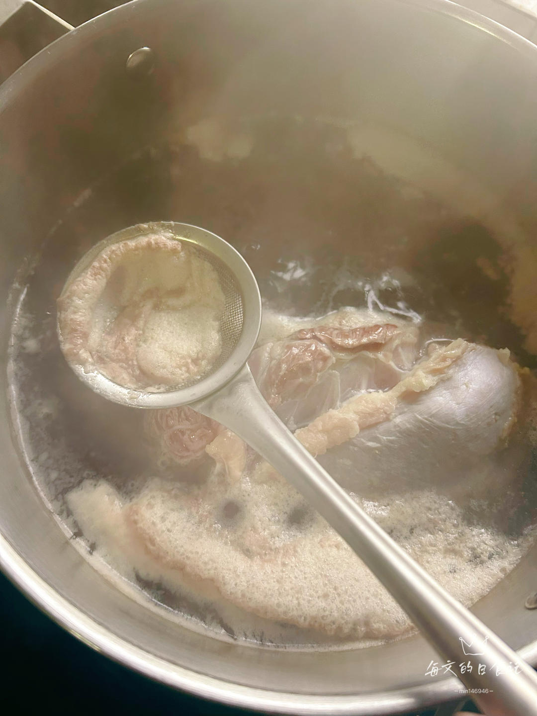 水烧开后撇去浮沫。
