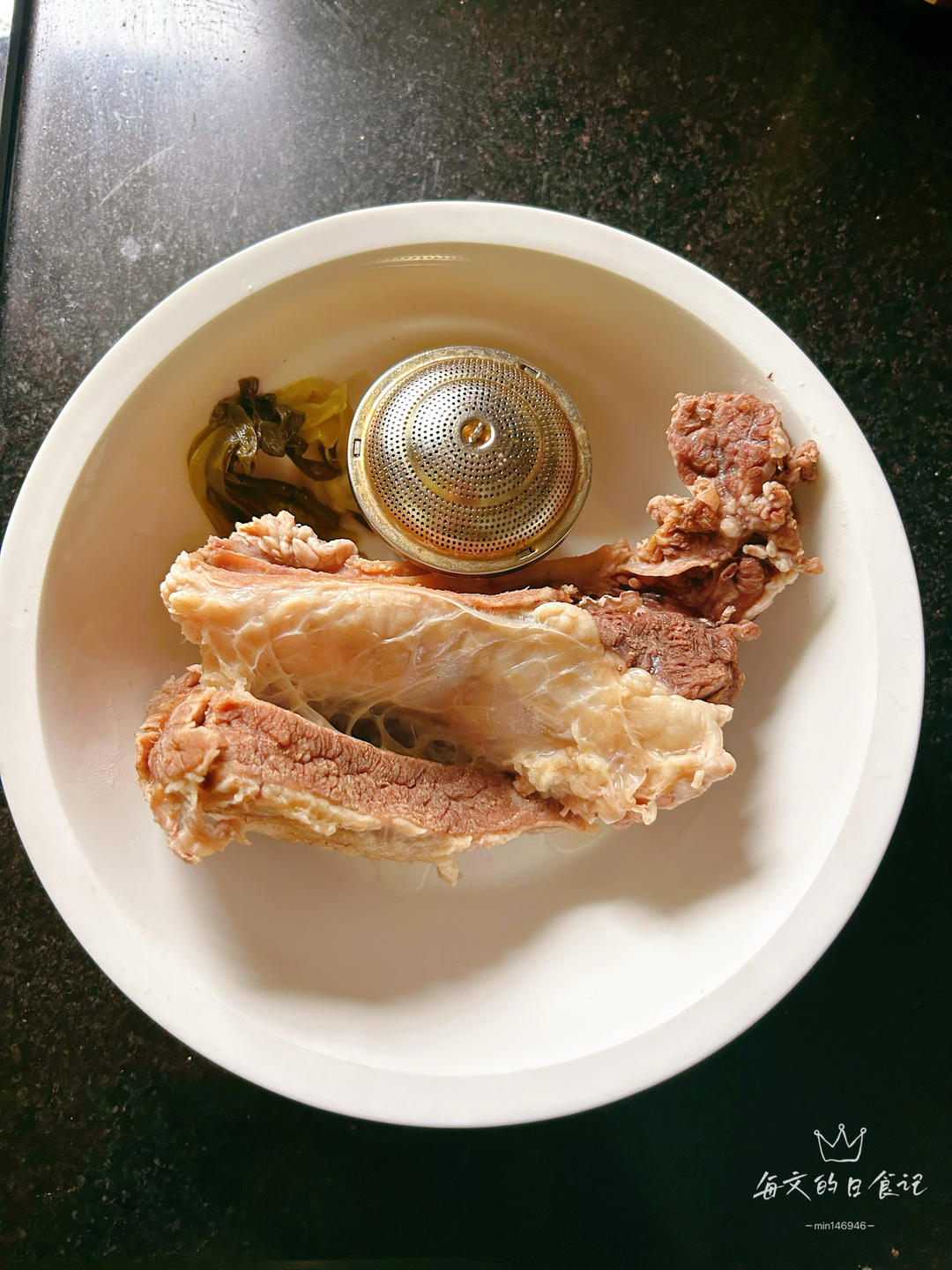 牛肉切成块,和白萝卜一起倒回汤里再煮30分钟至白萝卜软熟。(这个步骤忘记拍照了)