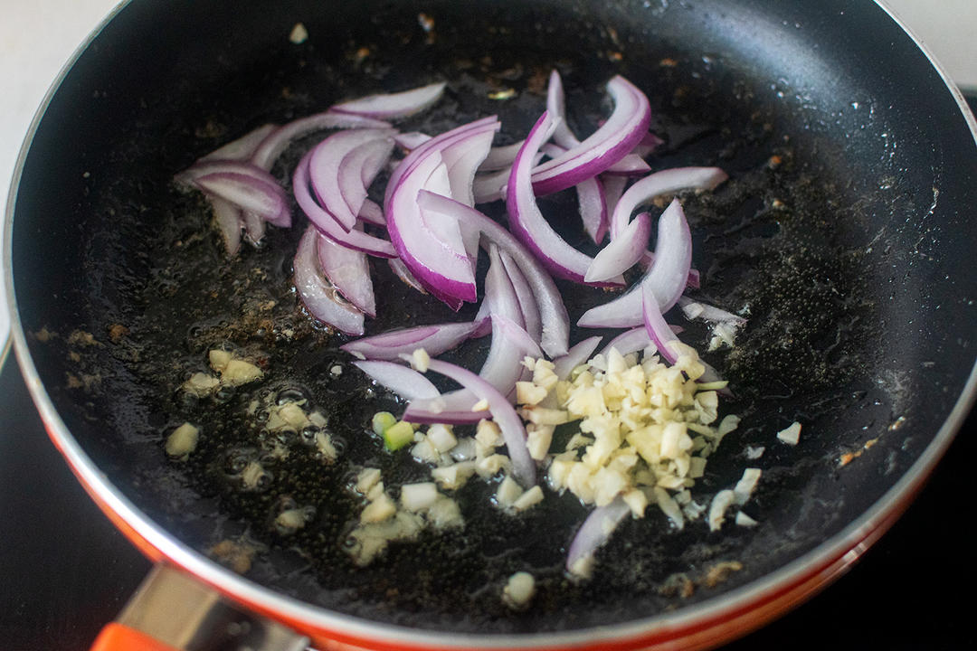 原锅爆香洋葱、葱/蒜末