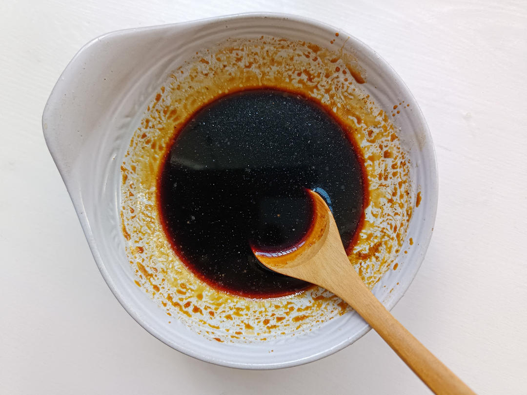 倒入碗汁调味料