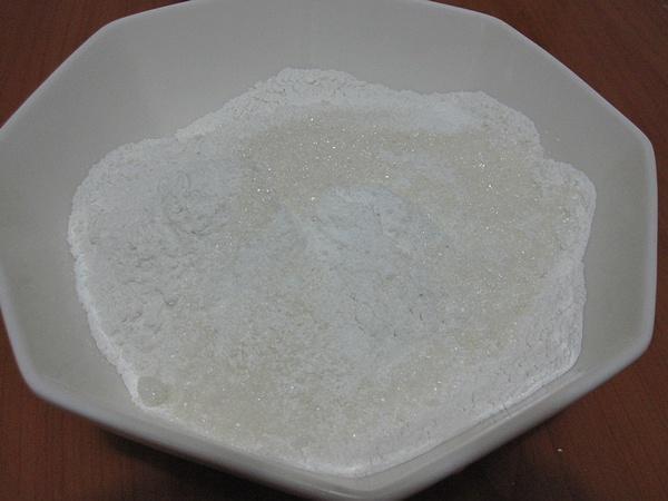 糯米粉称重,加入30克白砂糖,1T泡打粉,混合均匀。