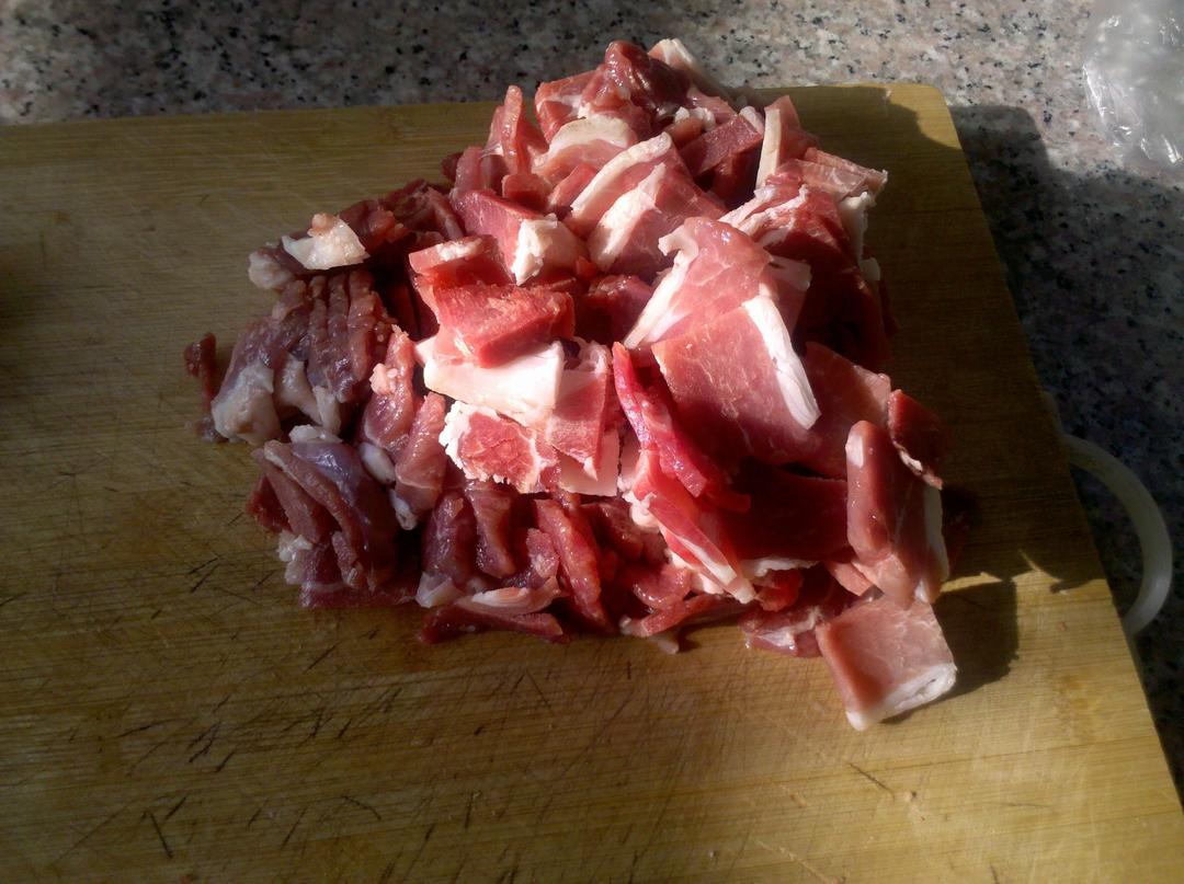 羊肉切成片,横着肉的纹理切。