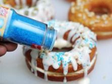 在面包圈表面儿撒上干果碎