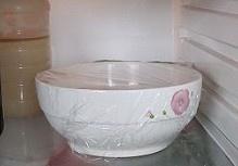 加入适量的料酒搅拌均匀后盖上保鲜膜入冰箱腌制至少3个小时